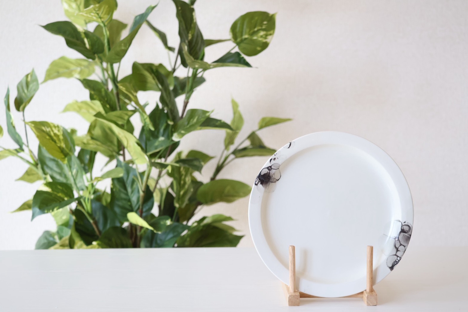 リムがあるので盛り付けしやすく、料理がきれいに見える一枚。