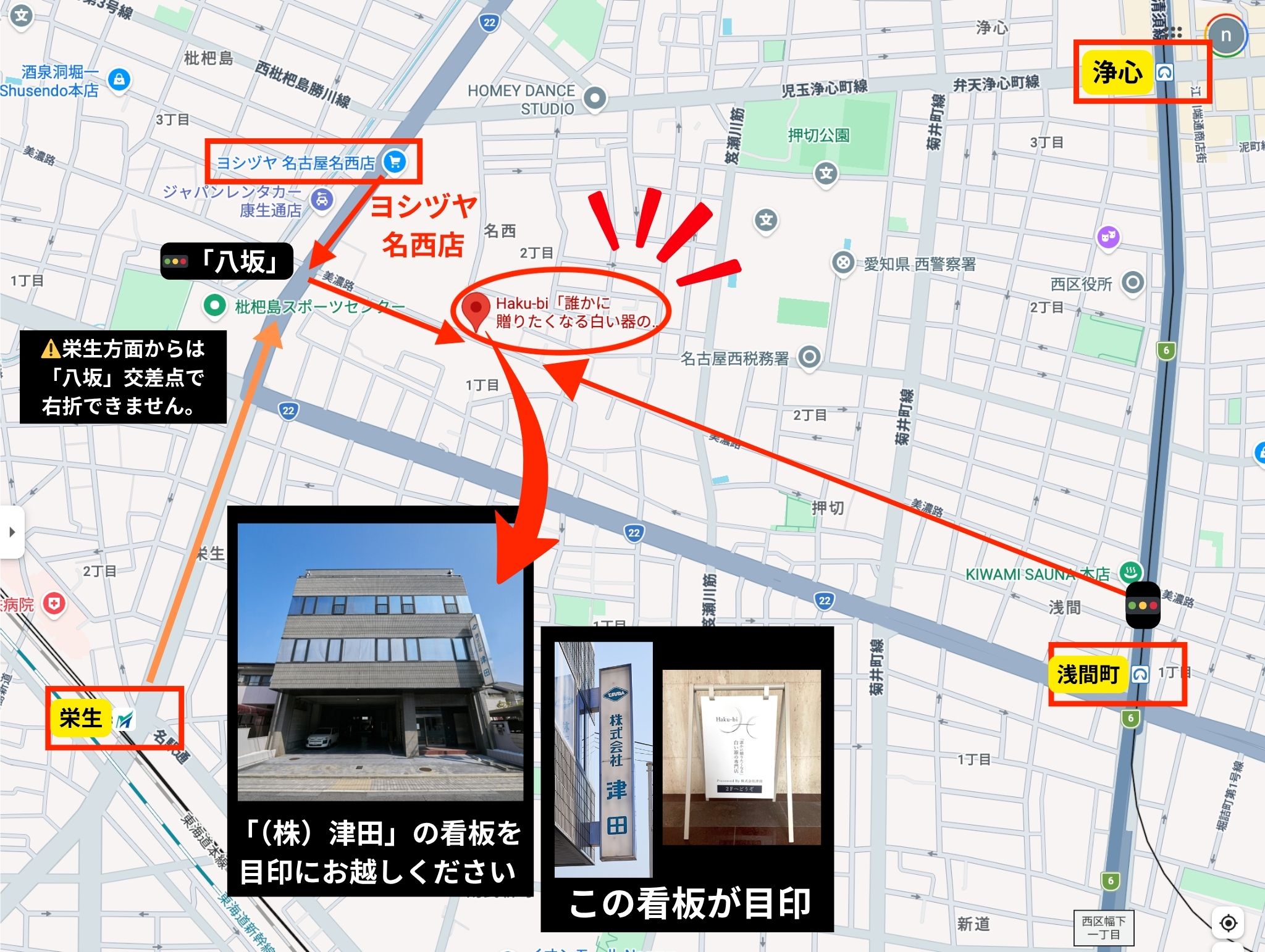 ”誰かに贈りたくなる”白い器の専門店「Haku-bi」店舗への行き方(ご案内地図)